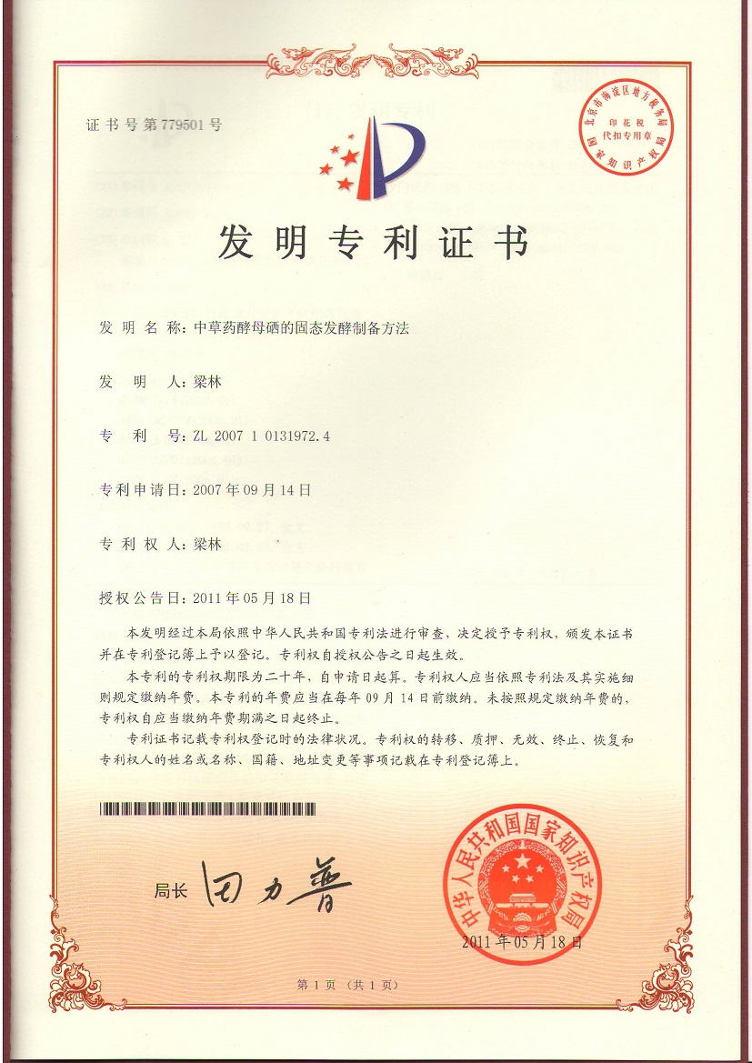 公司独立拥有中草药酵母硒的固态发酵发明专利(专利号:ZL20071013191972.4)以及一套通过补充机能性营养素解决免疫抑制和种畜禽繁殖障碍的成功方案。