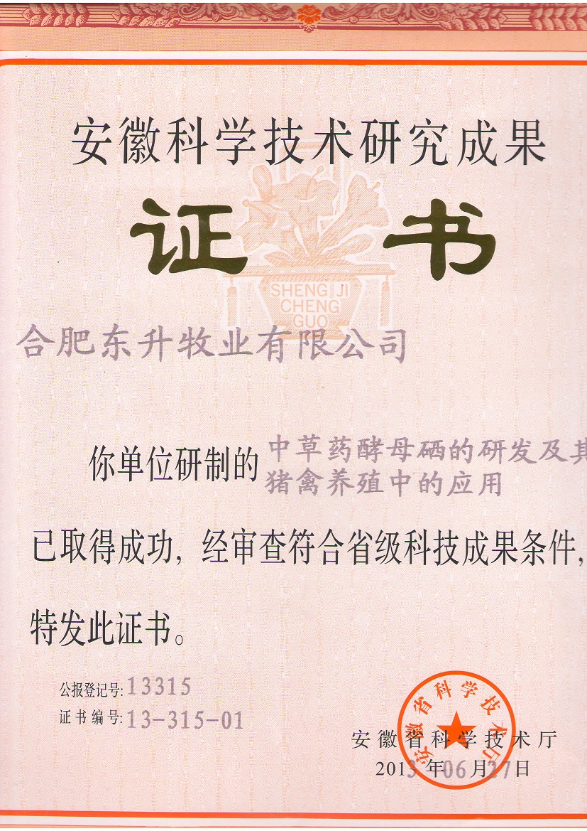 合肥东升牧业有限公司位于国家科技示范城合肥龙塘工业园区,成立于2004年,注册资本500万,占地面积30亩,是一家致力于研发、生产和销售种畜禽饲料为主的高新企业。公司汇集了一批动物营养、畜牧兽医、中医中药、工商管理等专业的优秀人才,注重技术创新,不断开拓进取,利用中医药国粹与独创的中草药酵母硒生产技术,向广大热爱养殖的朋友们提供绿色、安全、保健、促长的绿色无公害全价营养素预混料系列产品。